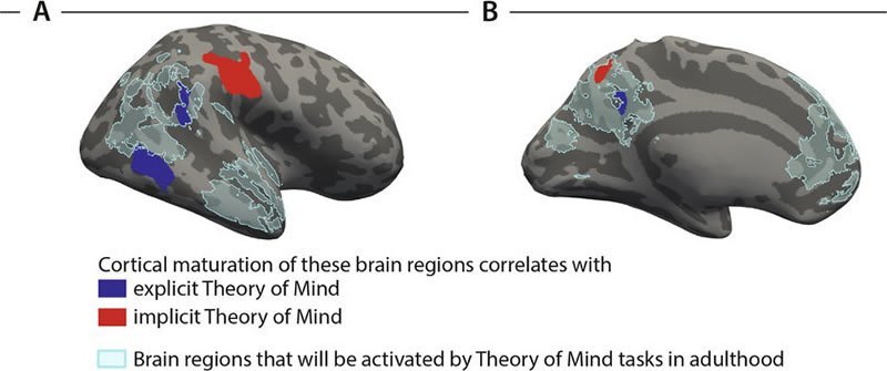 The study reports that the unique ability to understand what others think emerges around 4 years of age because of the maturation of a specific brain network which enables this. Younger children are already capable of predicting others’ behaviour based on what they think, but the study shows that this prediction of behaviour relies on a different brain network. The brain seems to have two different systems to take another person’s perspective, and these mature at different rates.