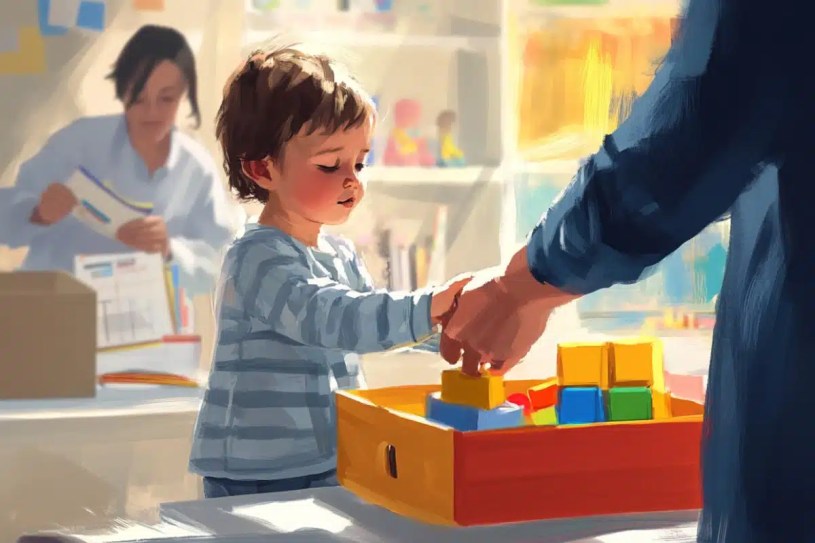 The overimitation task involved opening a box containing a toy in a sequence of three actions, including one that was irrelevant to the goal; the elicited imitation task, originally designed to test memory, required the child to copy a sequence of three actions correctly, such as putting a teddy to bed with a pillow and blanket.